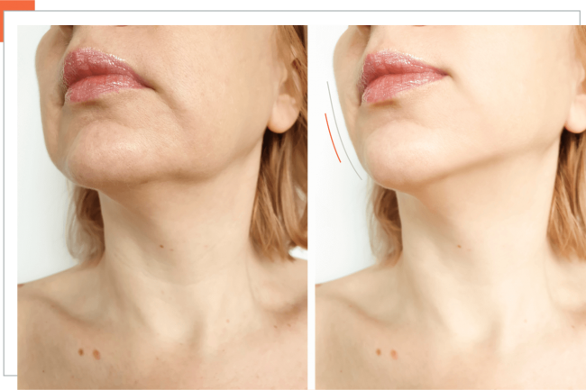 - The Change: Volume loss, weight gain, and fat accumulation weaken the jawline and create sagging jowls.